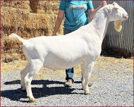 Senior Yearling and 2X RGCH Jr. doe, the second time to her baby sister,