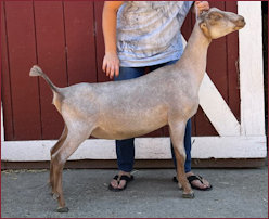 Senior Yearling and 2X RGCH Jr. doe, the second time to her baby sister,